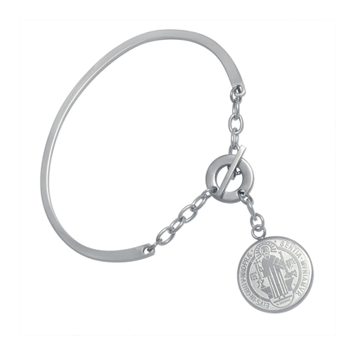 Stainless Steel Bangle with San Benito Charm with Lobster Lock