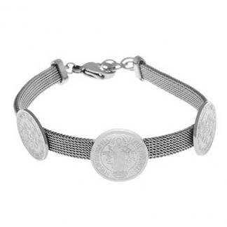 STAINLESS STEEL BRACELET ALL IN STEEL COLOR WITH 3 SAN BENITO ROUND CHARMS
