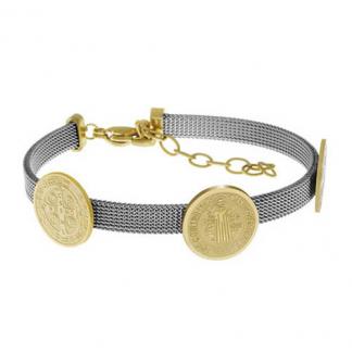 STAINLESS STEEL BRACELET IN IPG TWO TONE WITH 3 SAN BENITO ROUND CHARMS