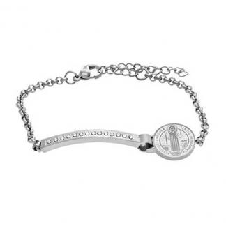STAINLESS STEEL BRACELET ALL IN STAINLESS STEEL WITH CZ WITH SAN BENITO PENDANT
