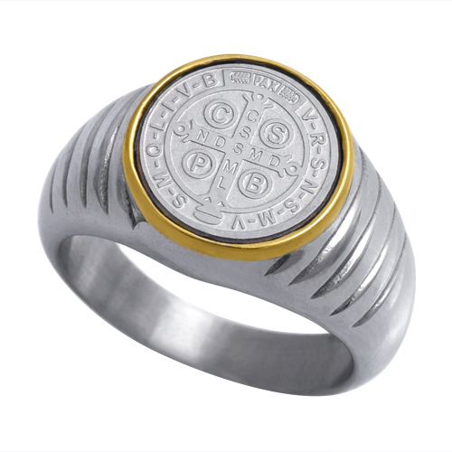 Stainless Steel Fashion Jewellery Religious Ring with San Benito in IPG Two Tone