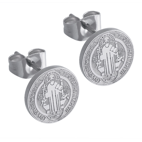 STAINLESS STEEL STUD EARRING IN CIRCLE SHAPE WITH SAN BENITO ALL IN STEEL COLOR (ONLY ONE SIDE /PATTERN LASERED)
