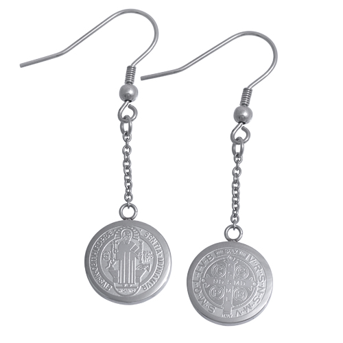 STAINLESS STEEL DANGLE EARRING WITH SAN BENITO CIRCLE PIECE (TWO SIDES DIFFERENT) ALL IN STEEL COLOR