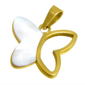 STAINLESS STEEL PENDANT IN BUTTERFLY SHAPE WITH SHELL ALL IN IPG COLOR