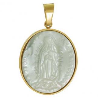 STAINLESS STEEL OVAL PENDANT IN OVAL SHAPE WITH GUADALUPE IN SHELL IN IPG COLOUR