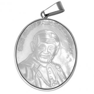 STAINLESS STEEL PENDANT IN OVAL SHAPE TWO SIDE DIFFERENCE WITH POPE JUAN & GUADALUPE IN SHELL