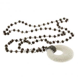 STAINLESS STEEL NECKLACE IN S/S COLOR OF VOLCANIC STONE CON CRYSTAL BLACK I WHITE.