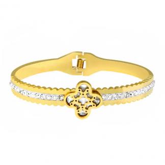 STAINLESS STEEL BANGLE IN IPG COLOR WITH CZ WITH SHELL IN FLOWER