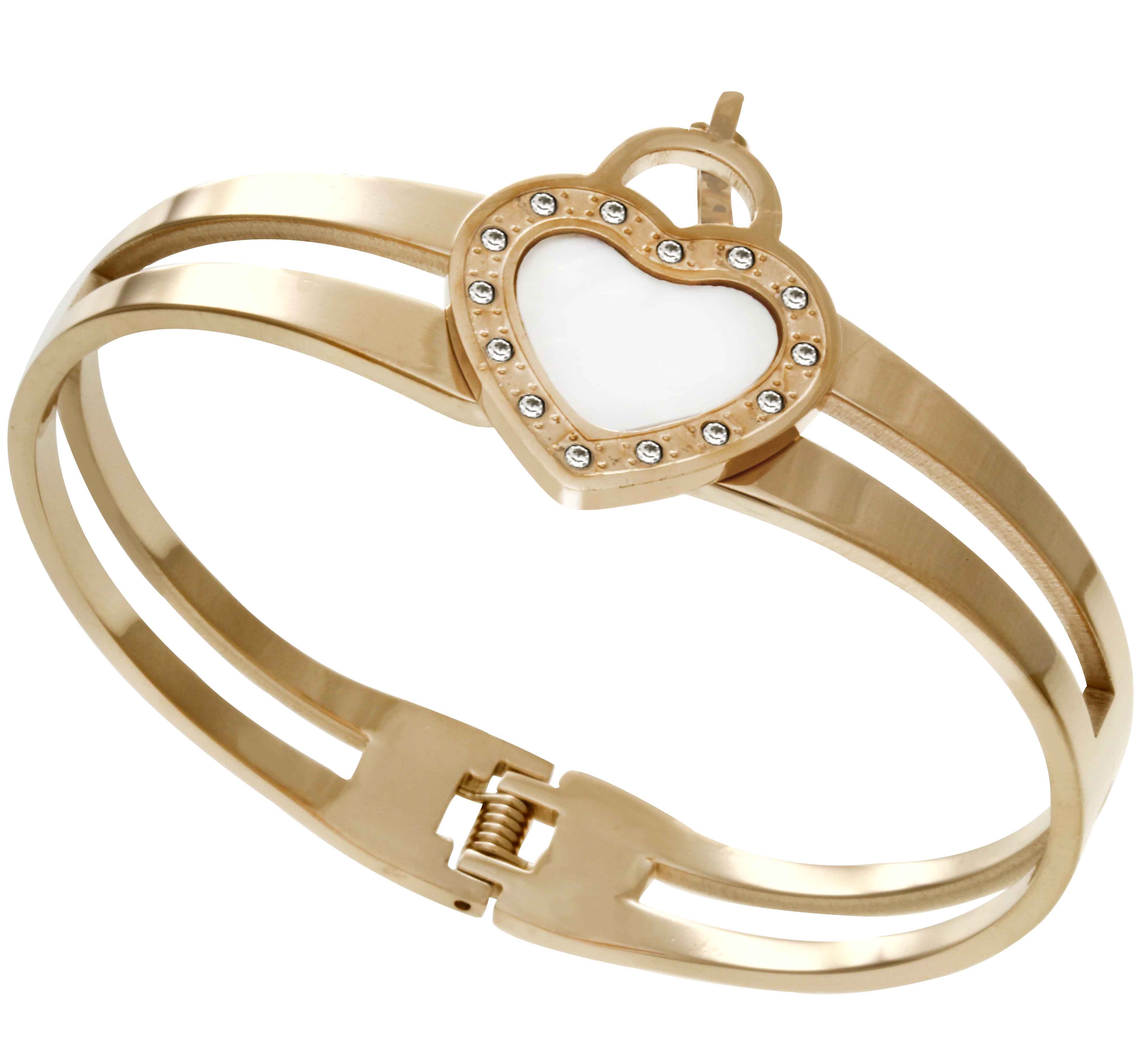 STAINLESS STEEL BANGLE IN IPR COLOR WITH HEART WITH SHELL WITH CZ WITH KEY CHARMSINNER