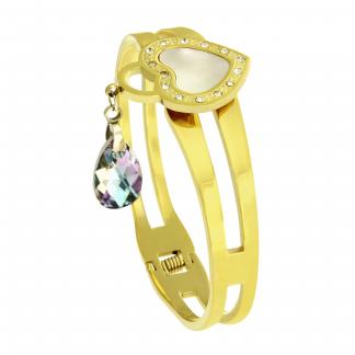 STAINLESS STEEL BANGLEIN IPG COLOR WITH HEART IN SHELL WITH CZ